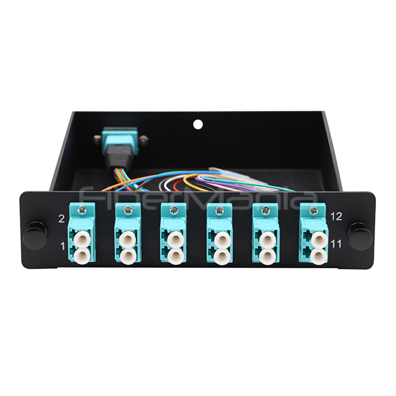 Módulo Cassete MTP-LC Duplex de 12 Fibras de Fibra Óptica LGX 6 Portas OM3 Multimodo Aqua